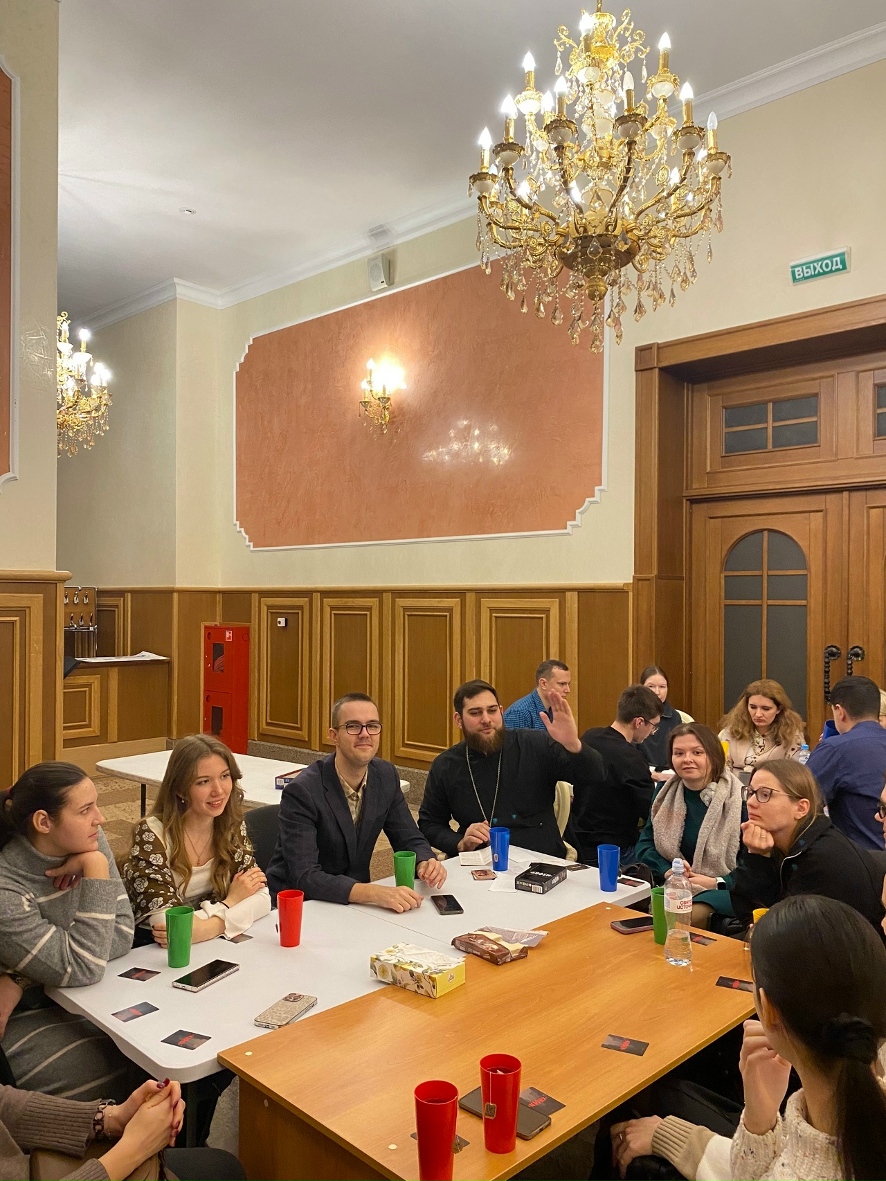 После молитвы участники продолжили общение в неформальной обстановке за чаепитием, организованном по благословению духовника молодежной группы, иерея Леонида Куламова. Встреча прошла в формате «Вечера настольных игр», что создало атмосферу теплого и душевного товарищества.