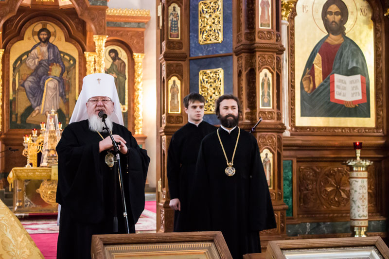 После богослужения Владыка митрополит обратился со словами напутствия к отбывающему на кафедру епископу Россошанскому Андрею, исполнявшему до сего дня послушание настоятеля Благовещенского кафедрального собора.