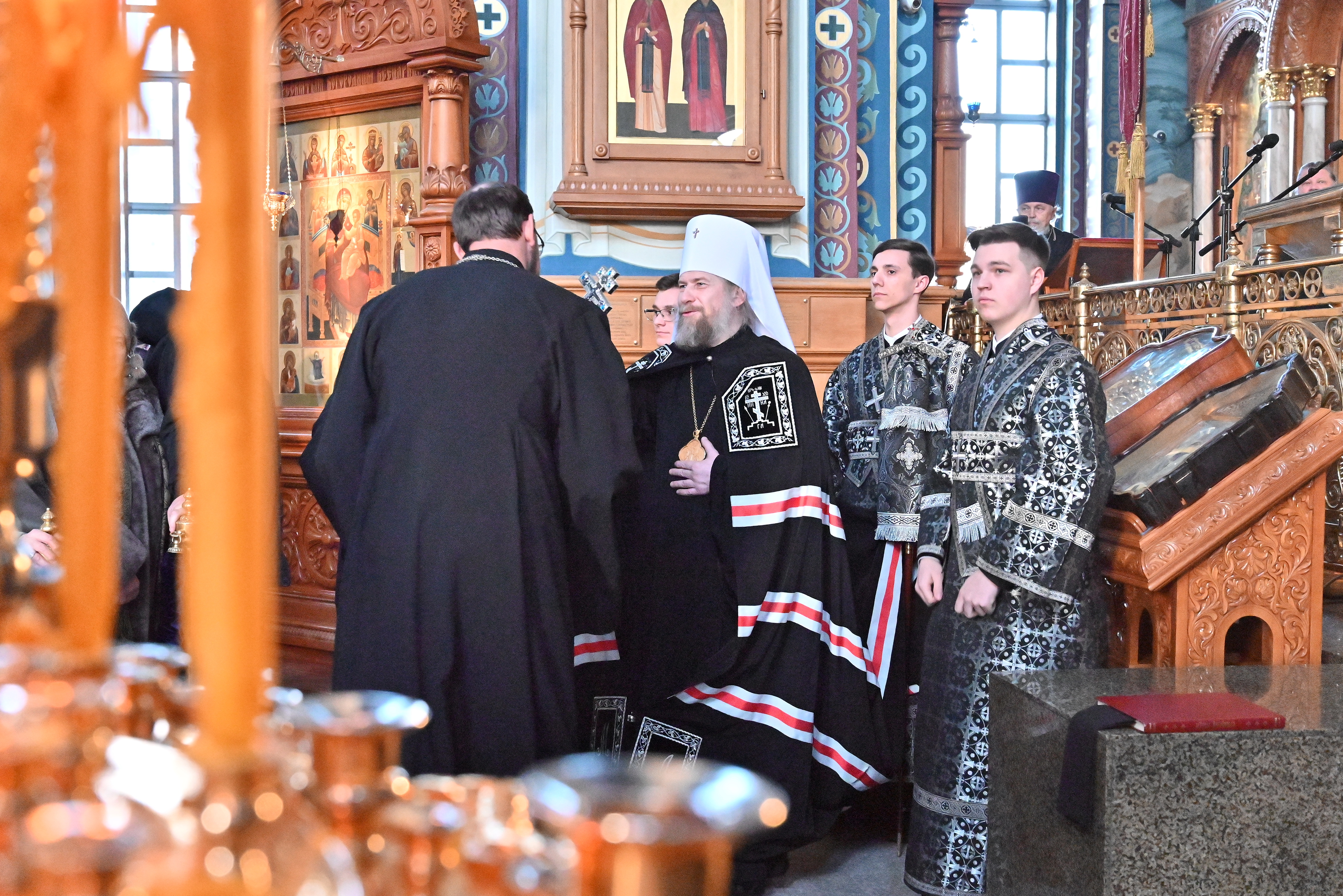 По завершении проповеди Архипастырь вознес молитвы на начало поста Святой Четыредесятницы, в которых испрашивалось Божие благословение всем, начинающим спасительные великопостные труды.