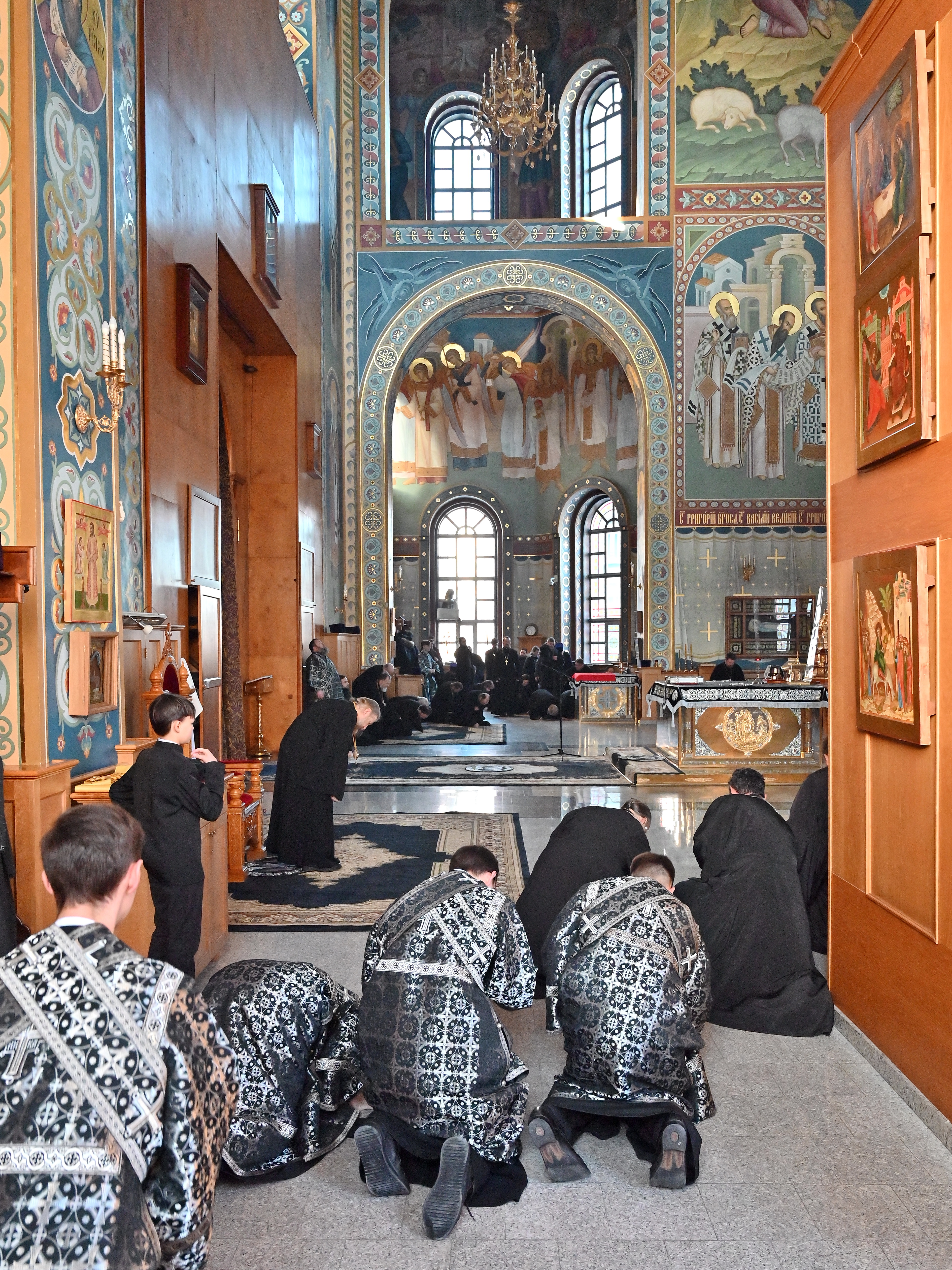 Завершилась вечерня чтением молитвы преподобного Ефрема Сирина: "Господи и Владыко живота моего, дух праздности, уныния, любоначалия и празднословия не даждь ми.