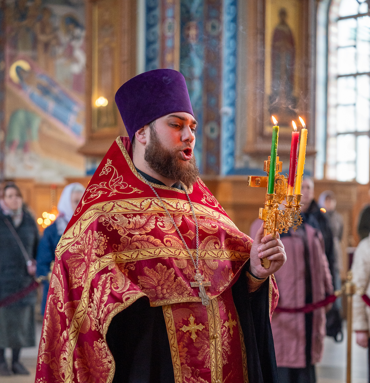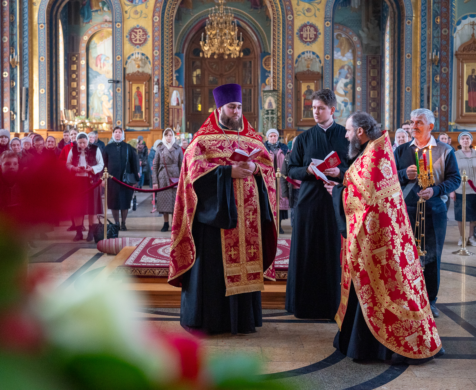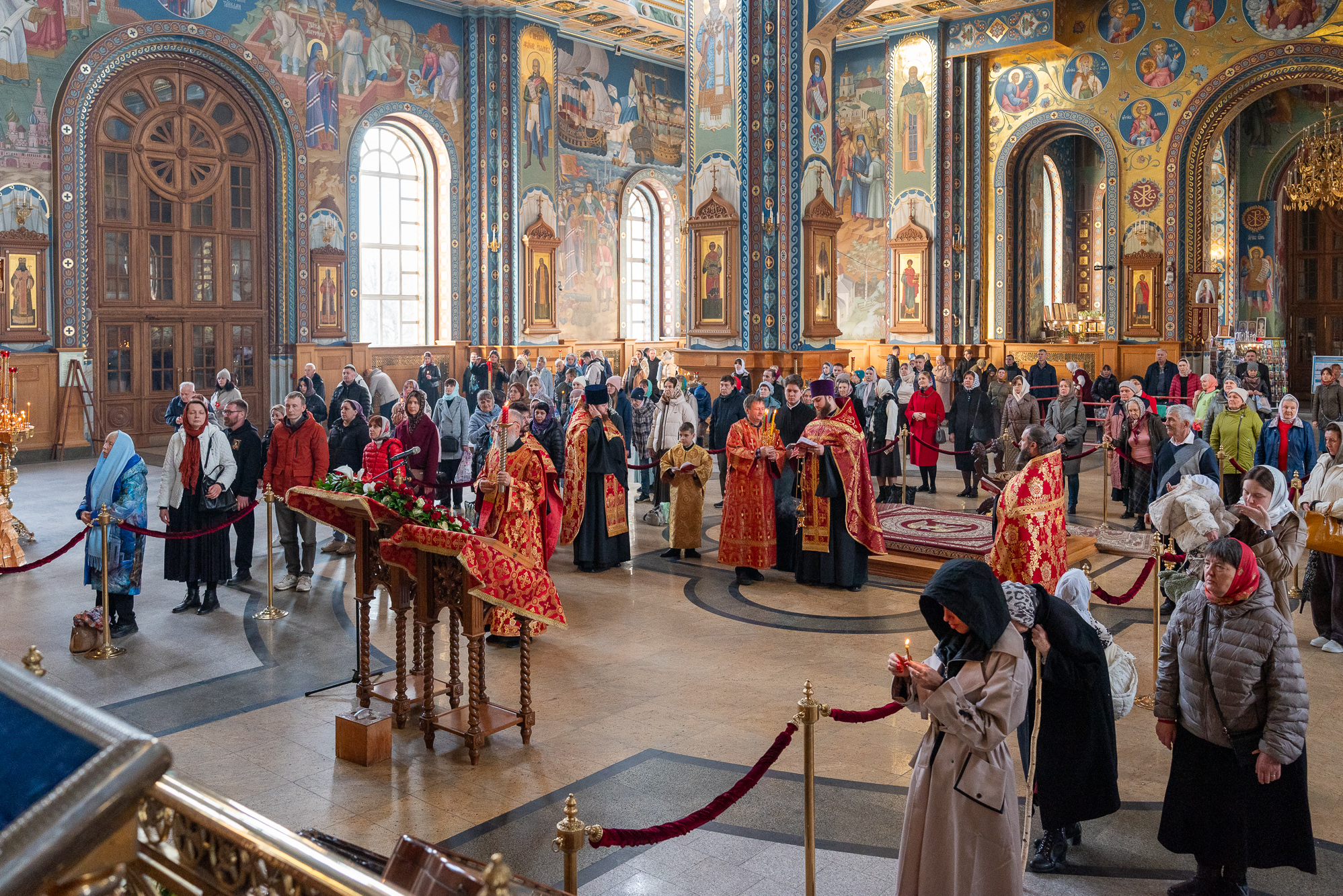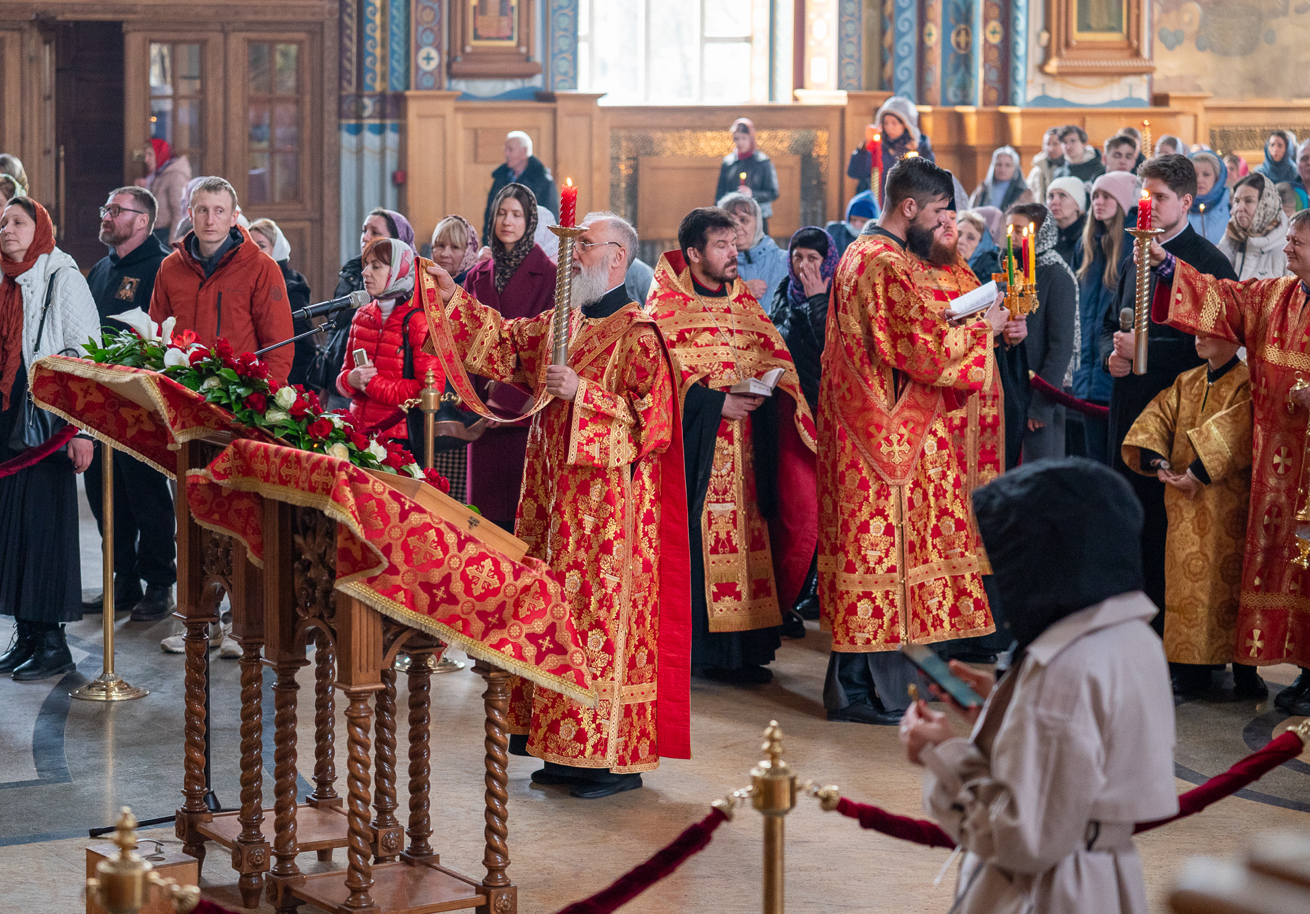 13 апреля 2026 года, вечером в понедельник Светлой седмицы в Благовещенском кафедральном соборе было совершено уставное богослужение –Пасхальные вечерня и утреня.