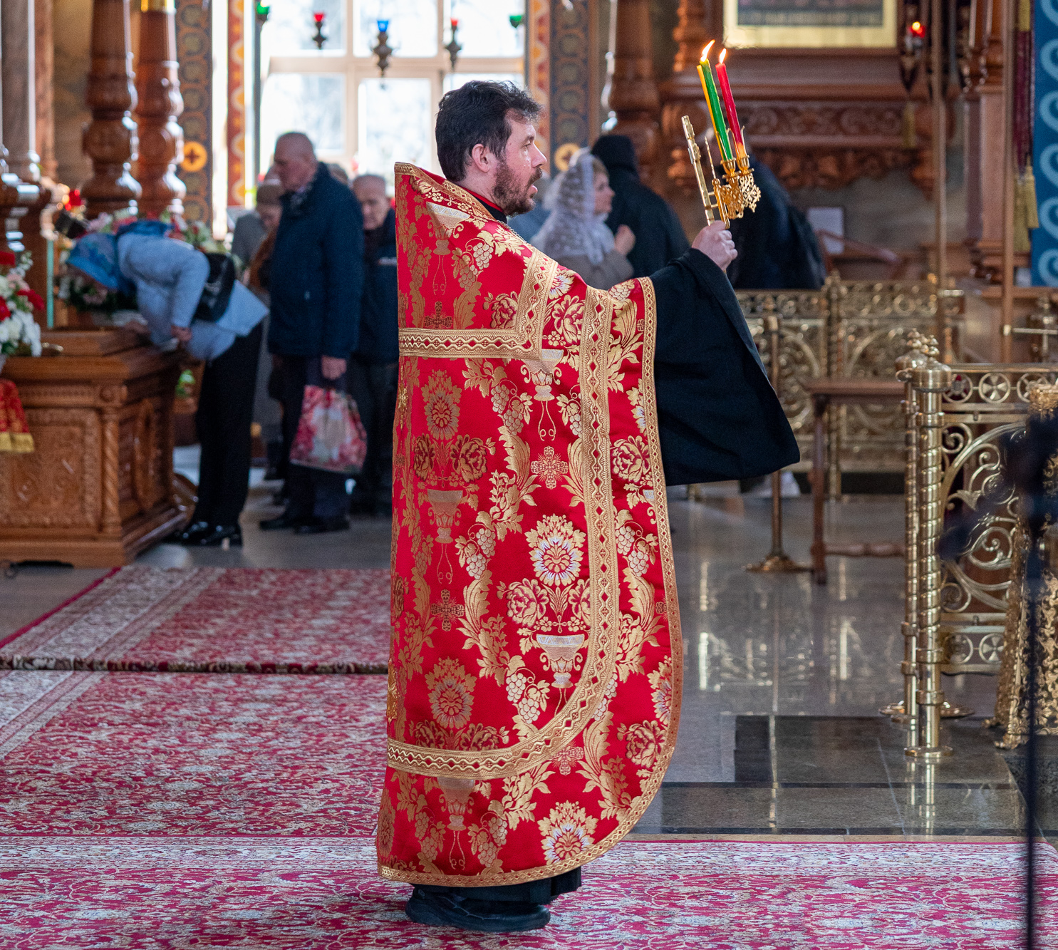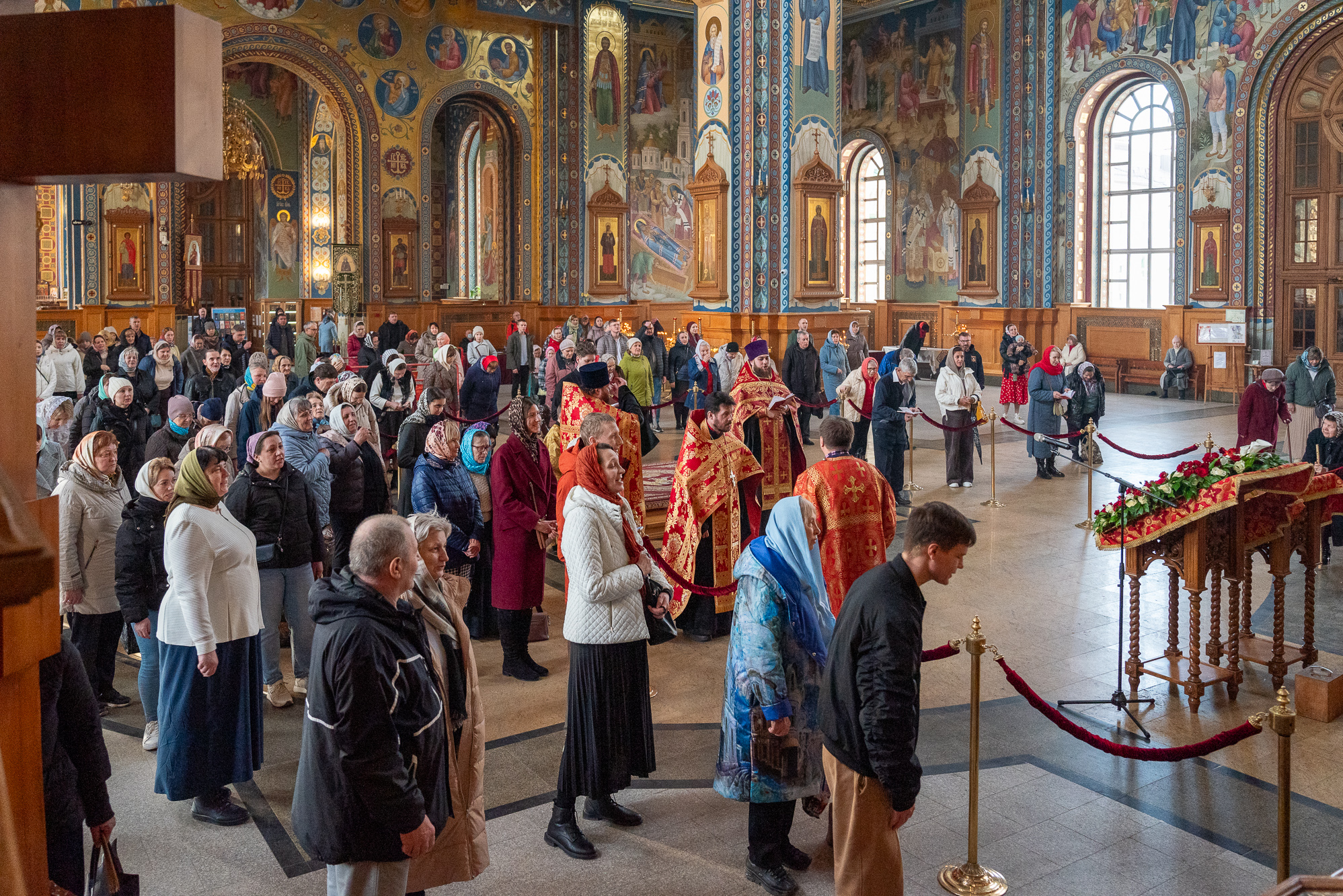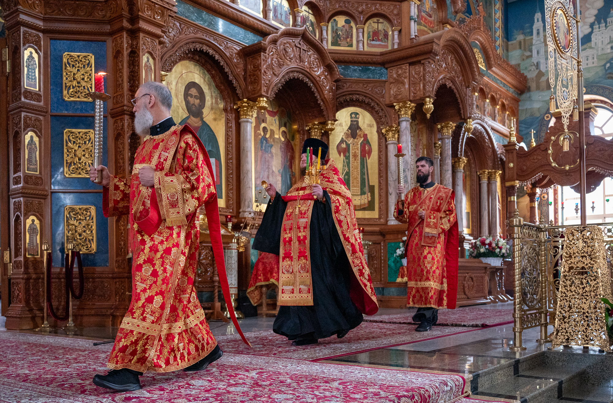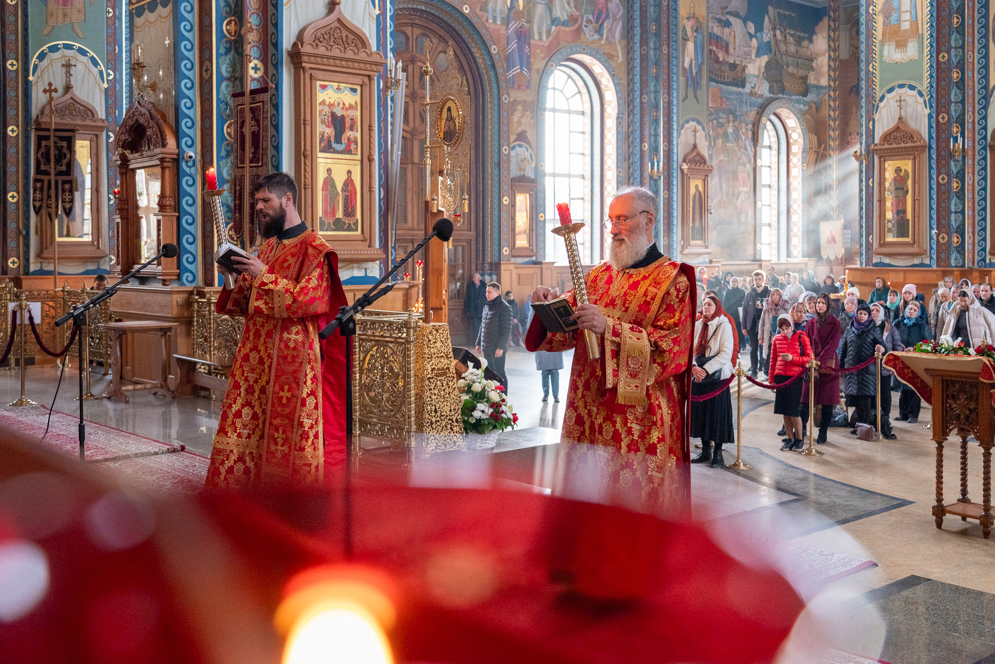 13 апреля 2026 года, вечером в понедельник Светлой седмицы в Благовещенском кафедральном соборе было совершено уставное богослужение –Пасхальные вечерня и утреня.