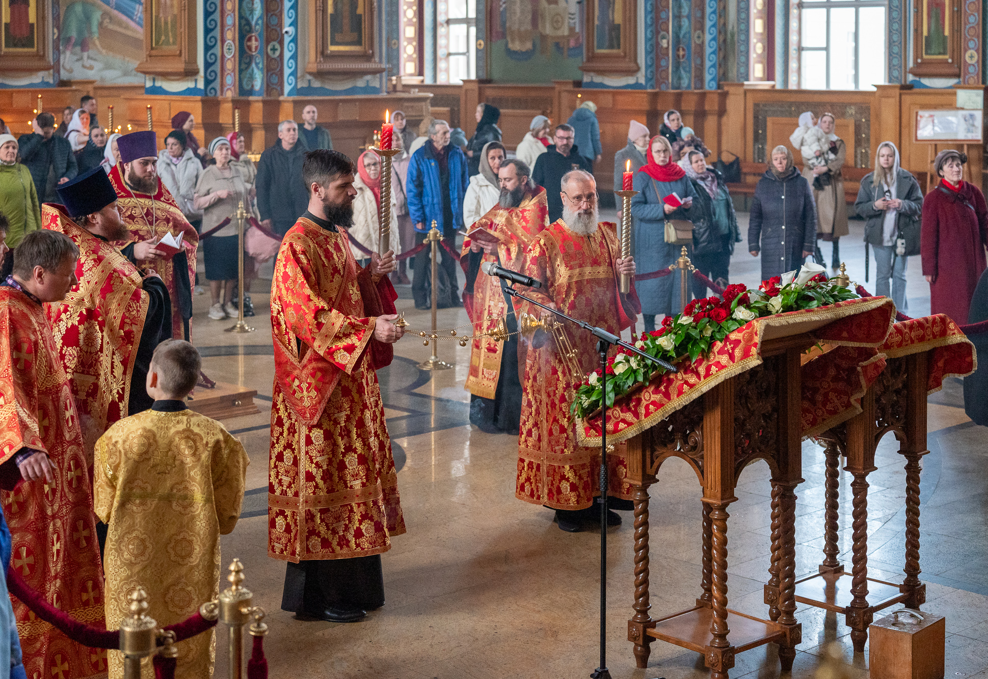 Богослужебные песнопения исполнил смешанный митрополичий хор под управлением регента Ильи Ижогина.