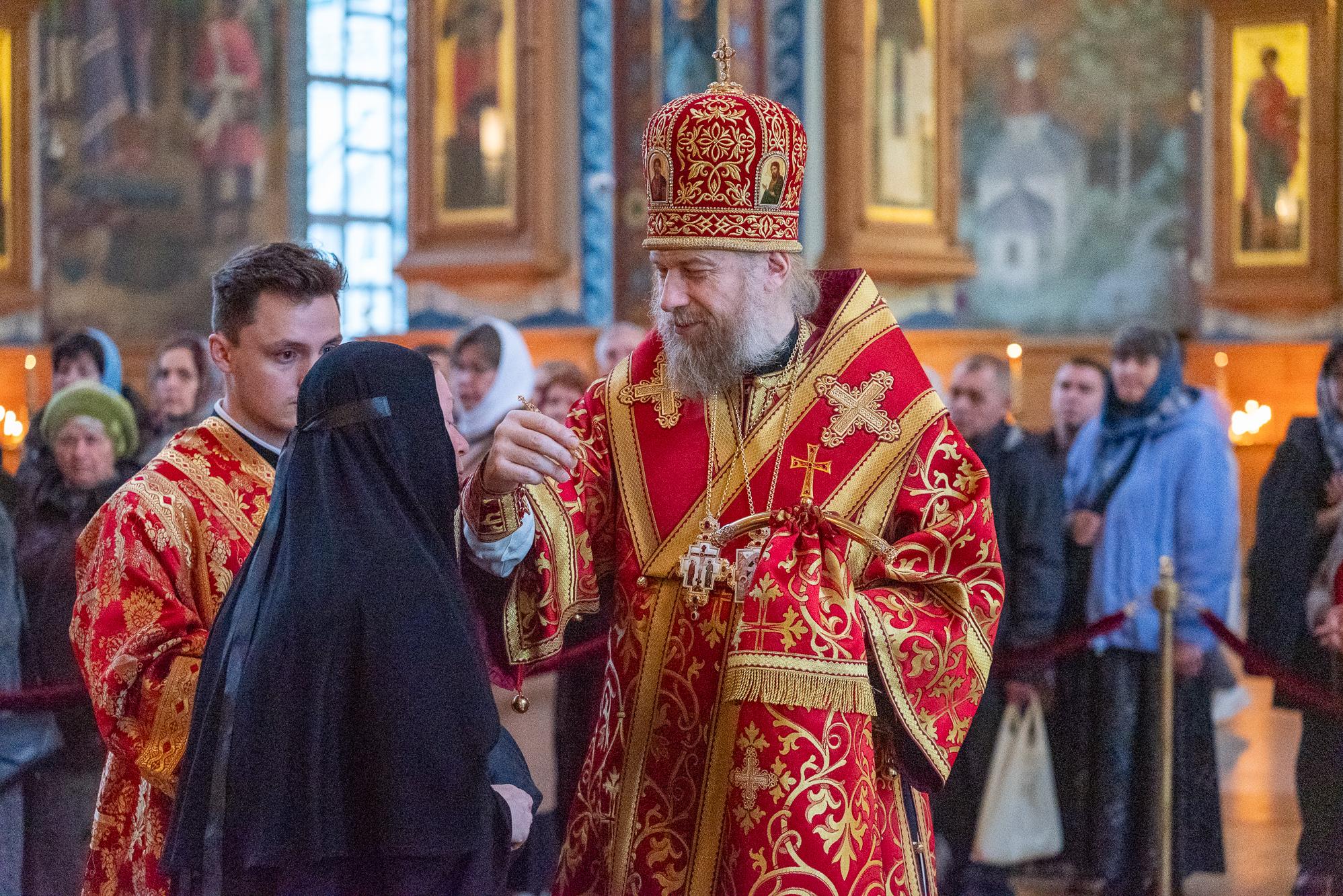 Во время чтения канонов Владыка совершил помазание духовенства и богомольцев освященным елеем.