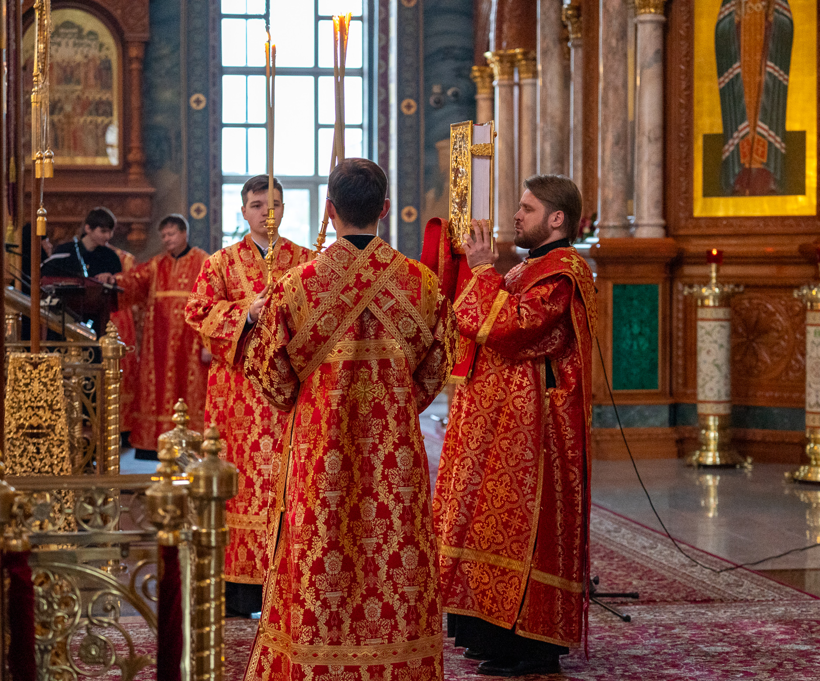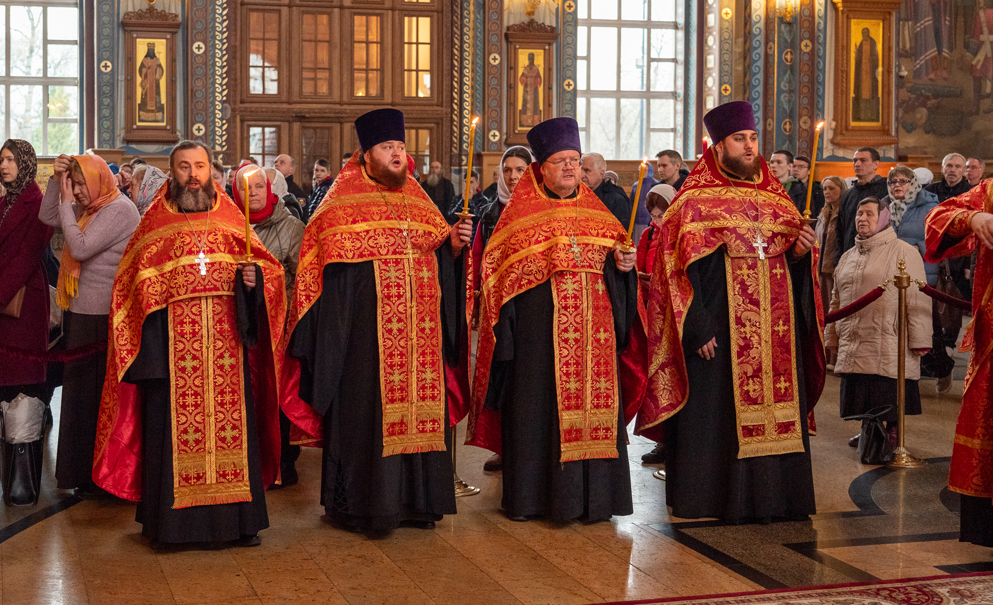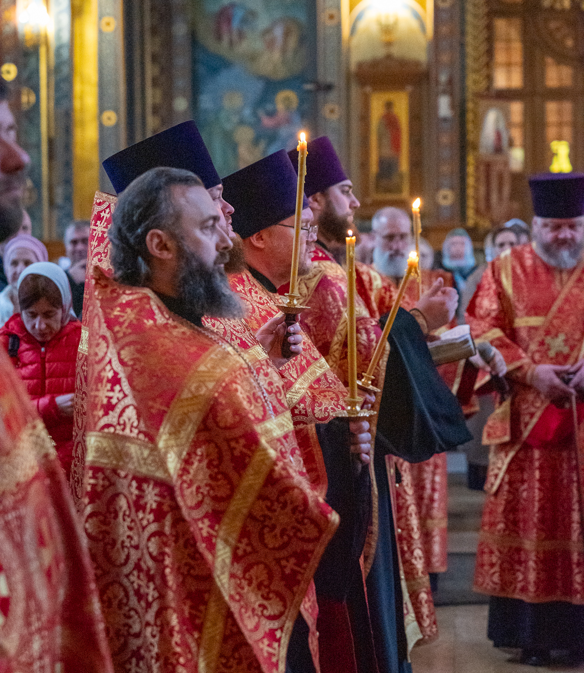 Богослужебные песнопения торжественно исполнял смешанный митрополичий хор кафедрального собора под управлением регента Ильи Изжогина.