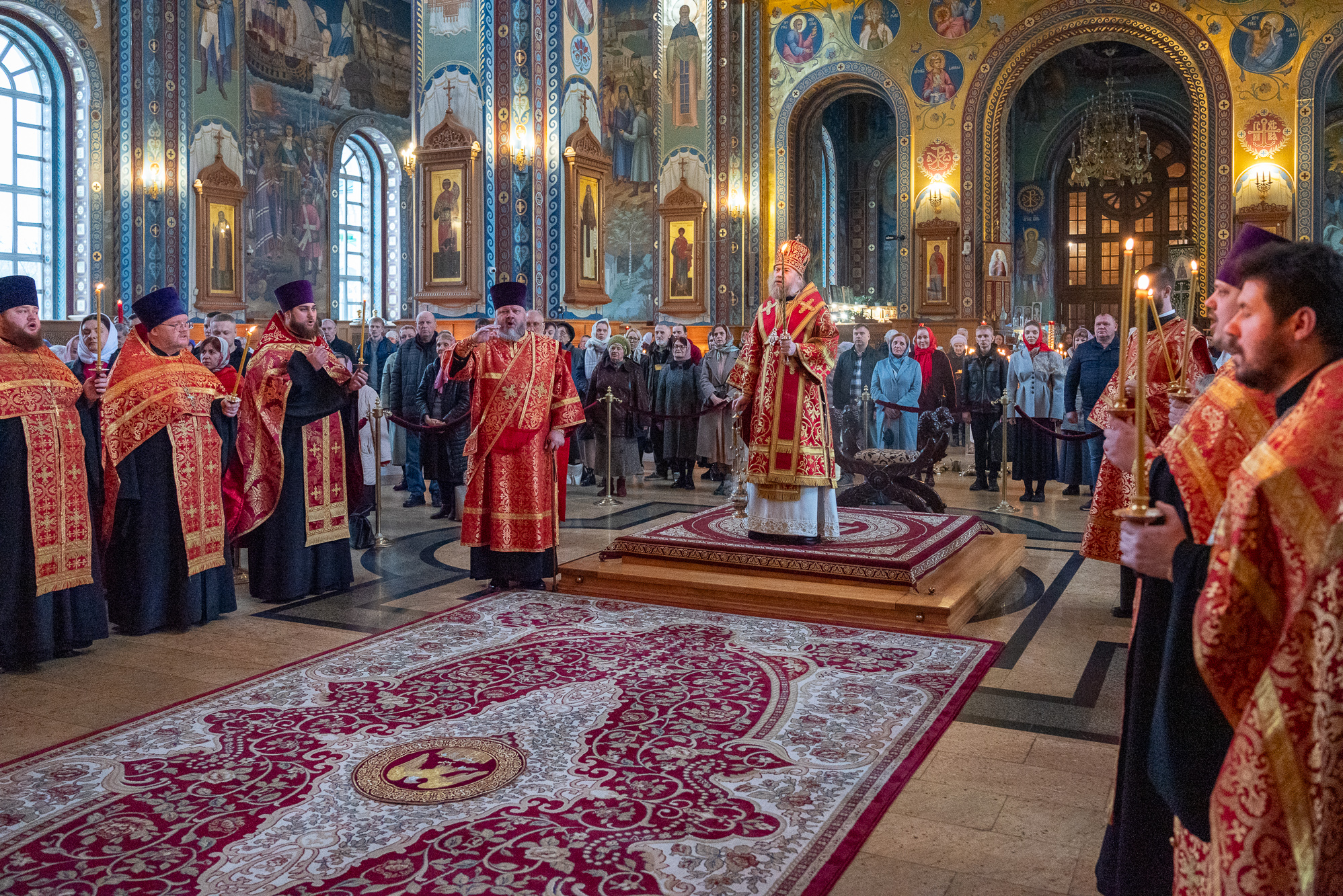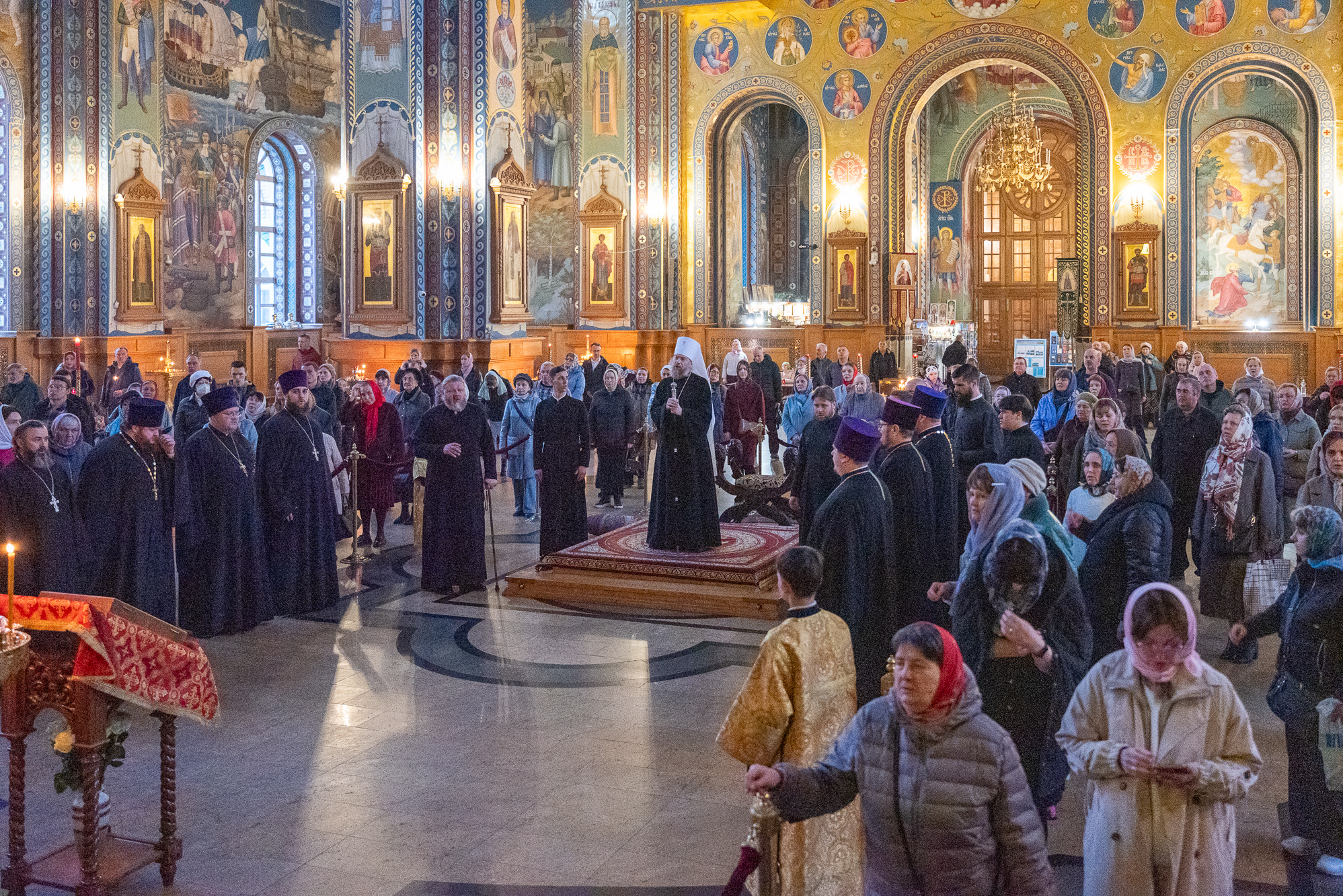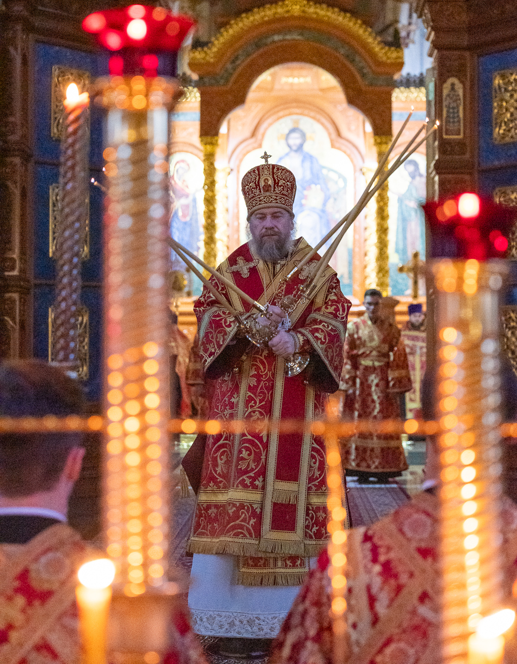 Богослужебные песнопения торжественно исполнял смешанный митрополичий хор кафедрального собора под управлением регента Ильи Изжогина.