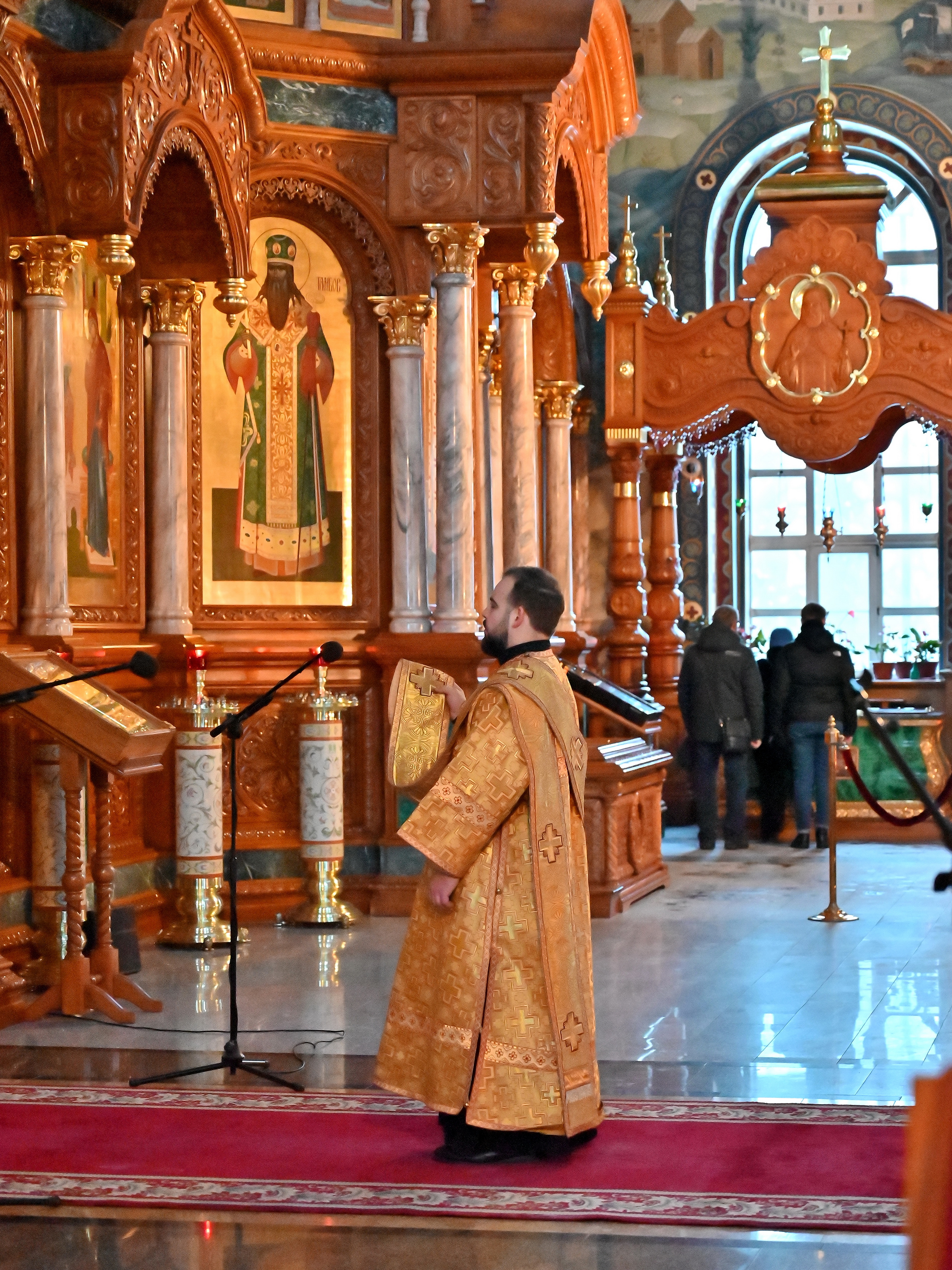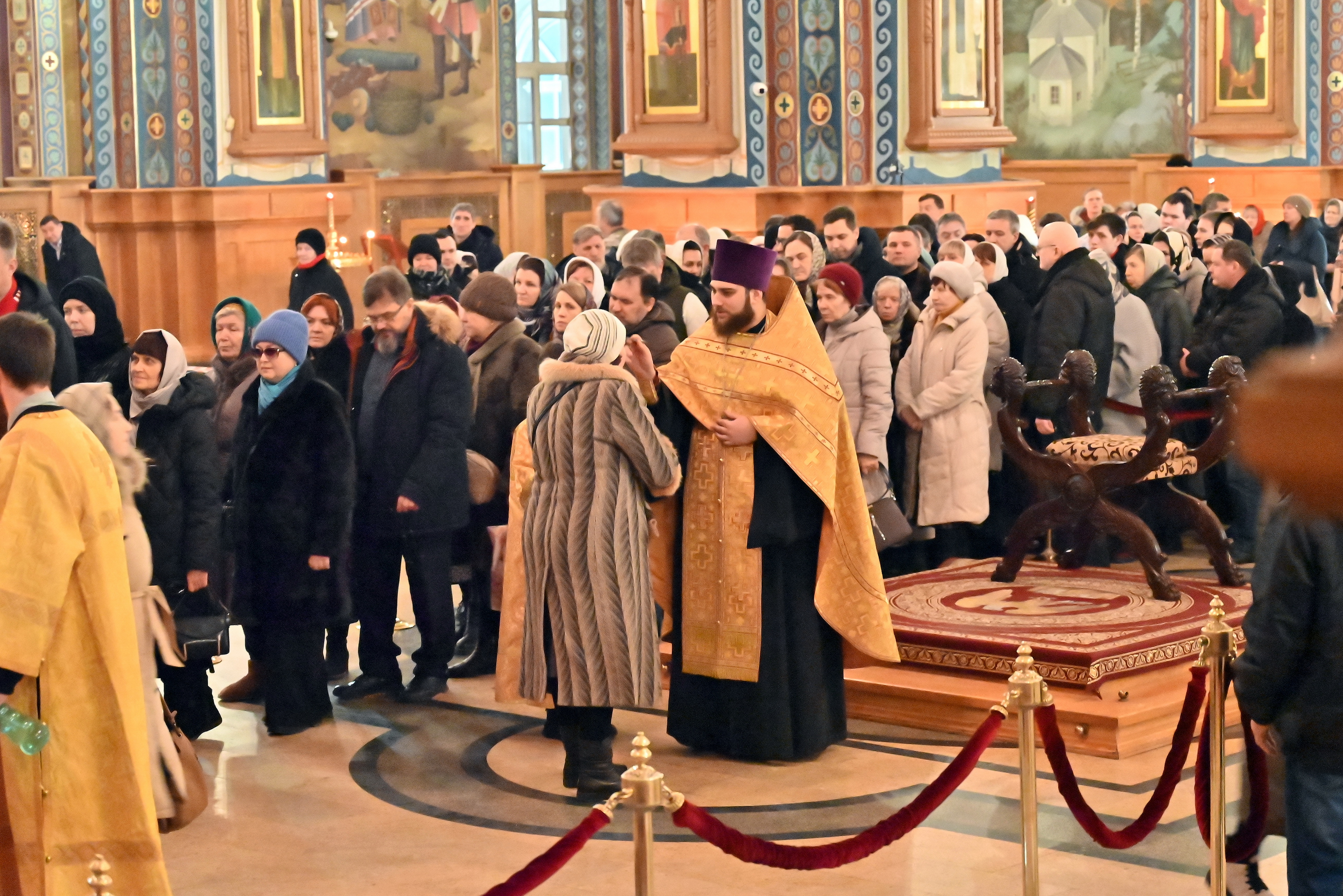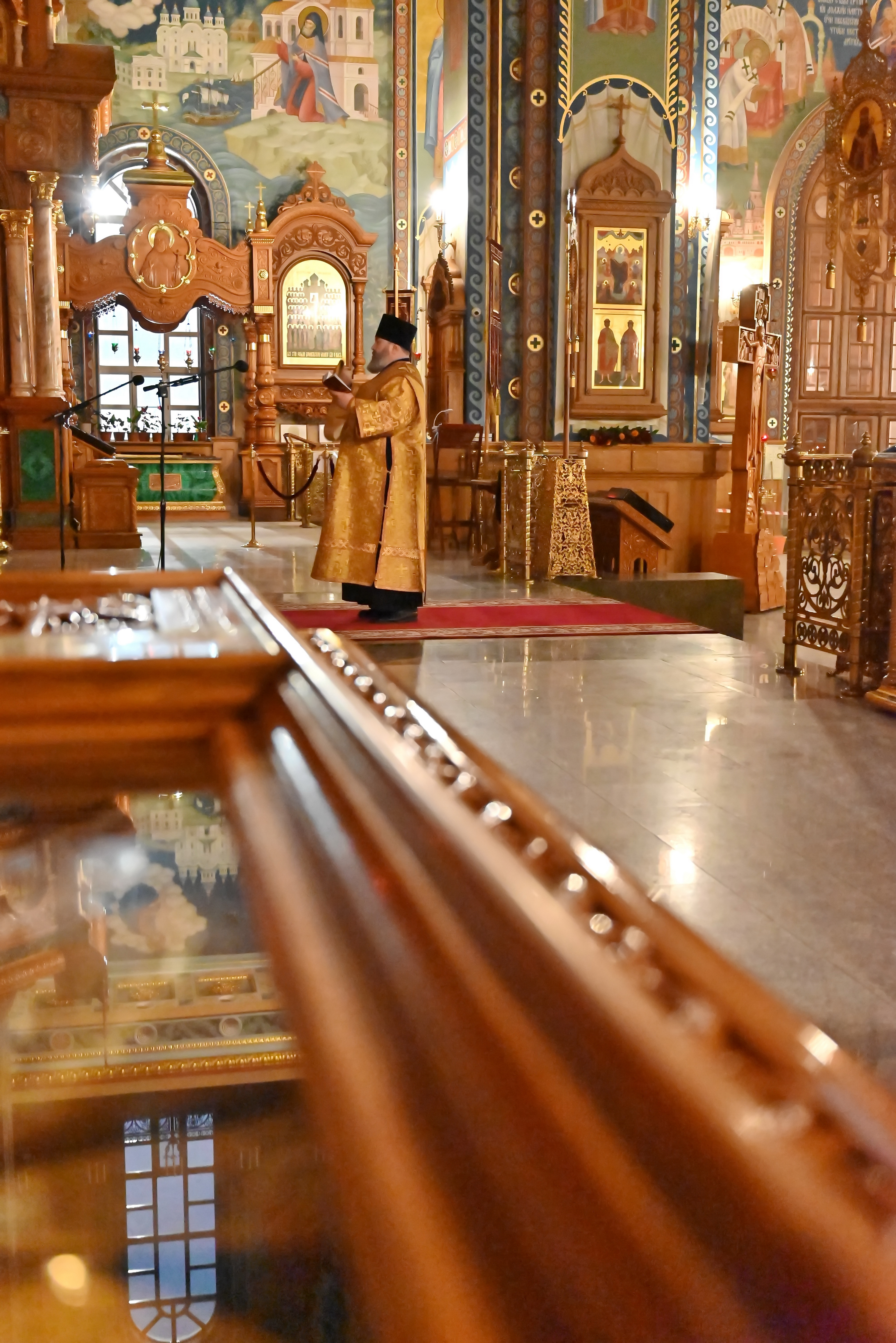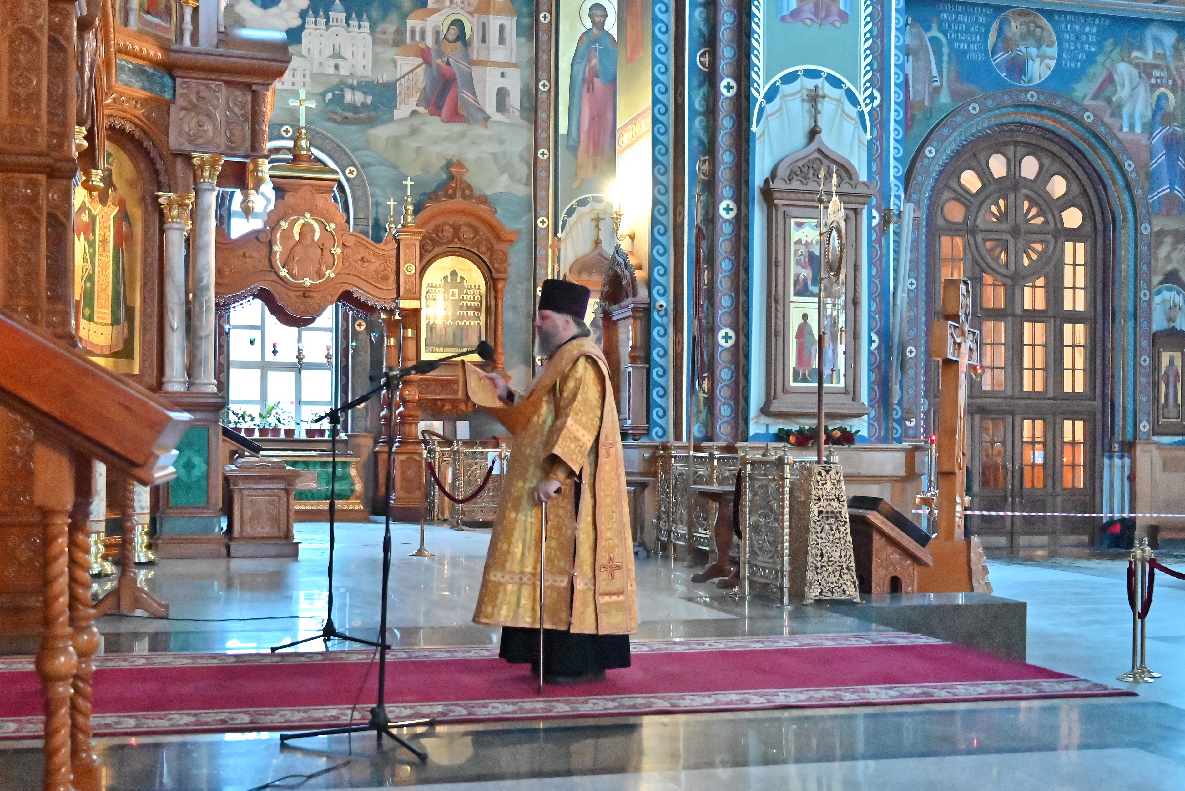 Богослужение возглавил архимандрит Серафим (Тищенко) . Его Высокопреподобию сослужили клирики собора.