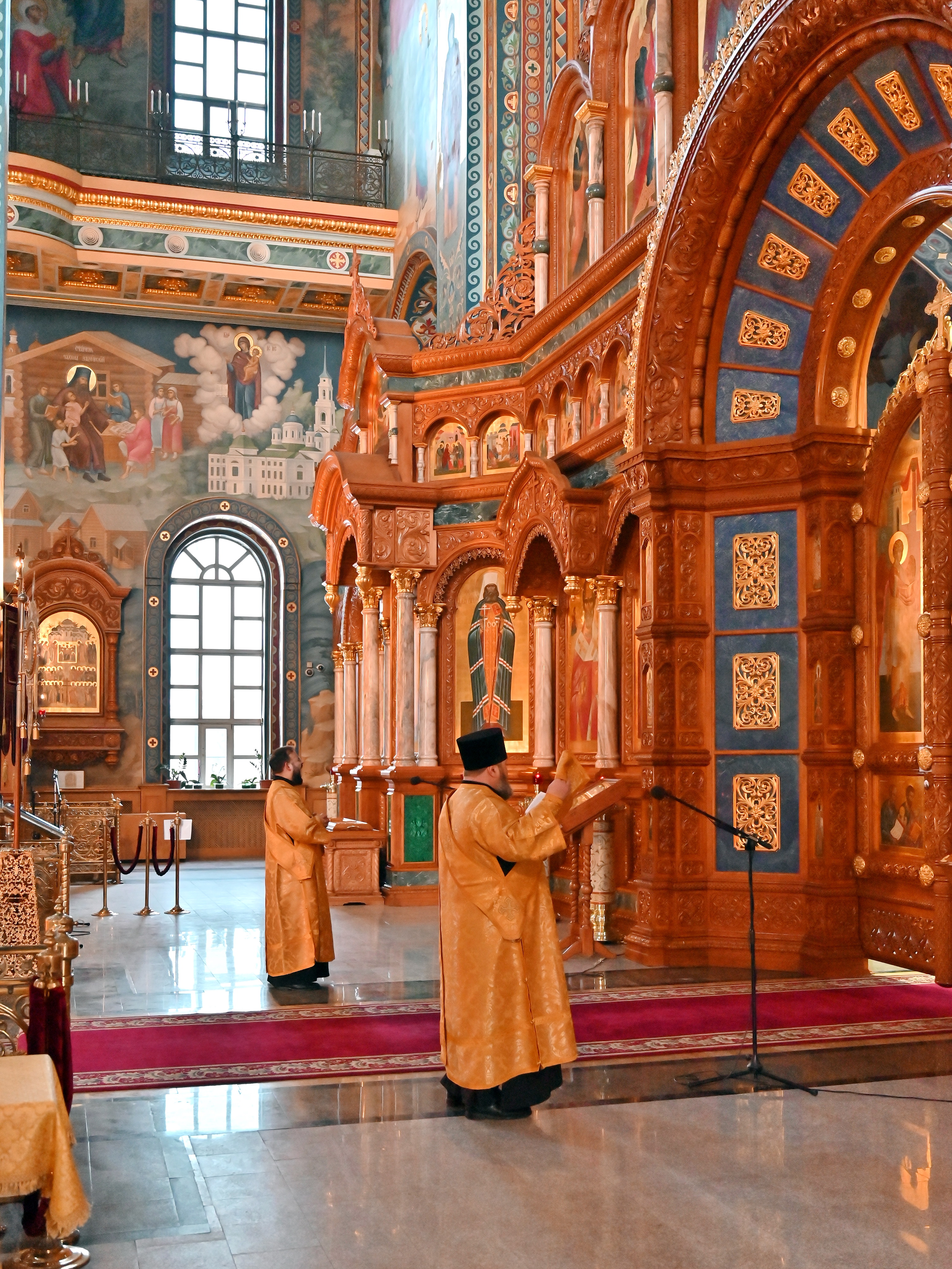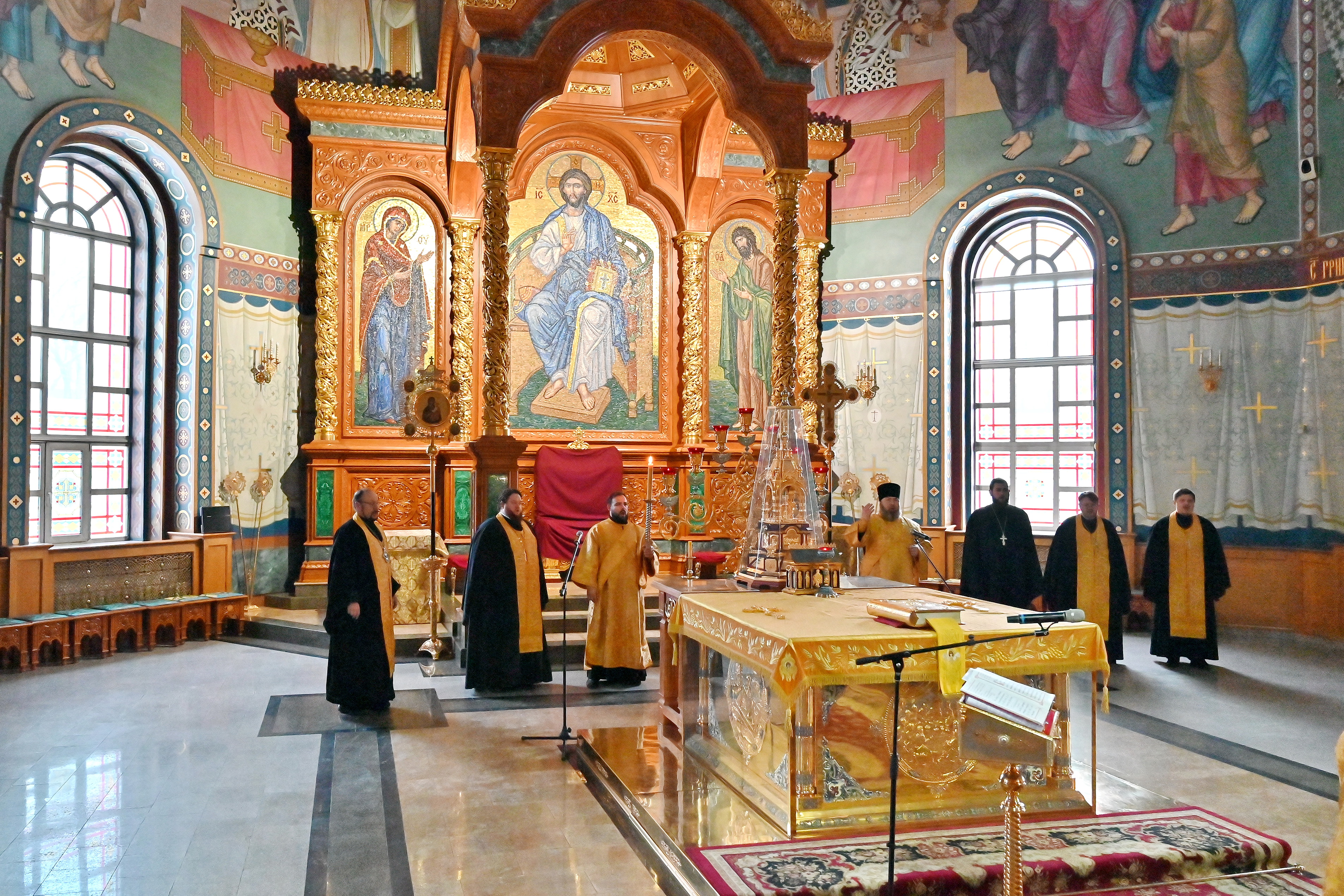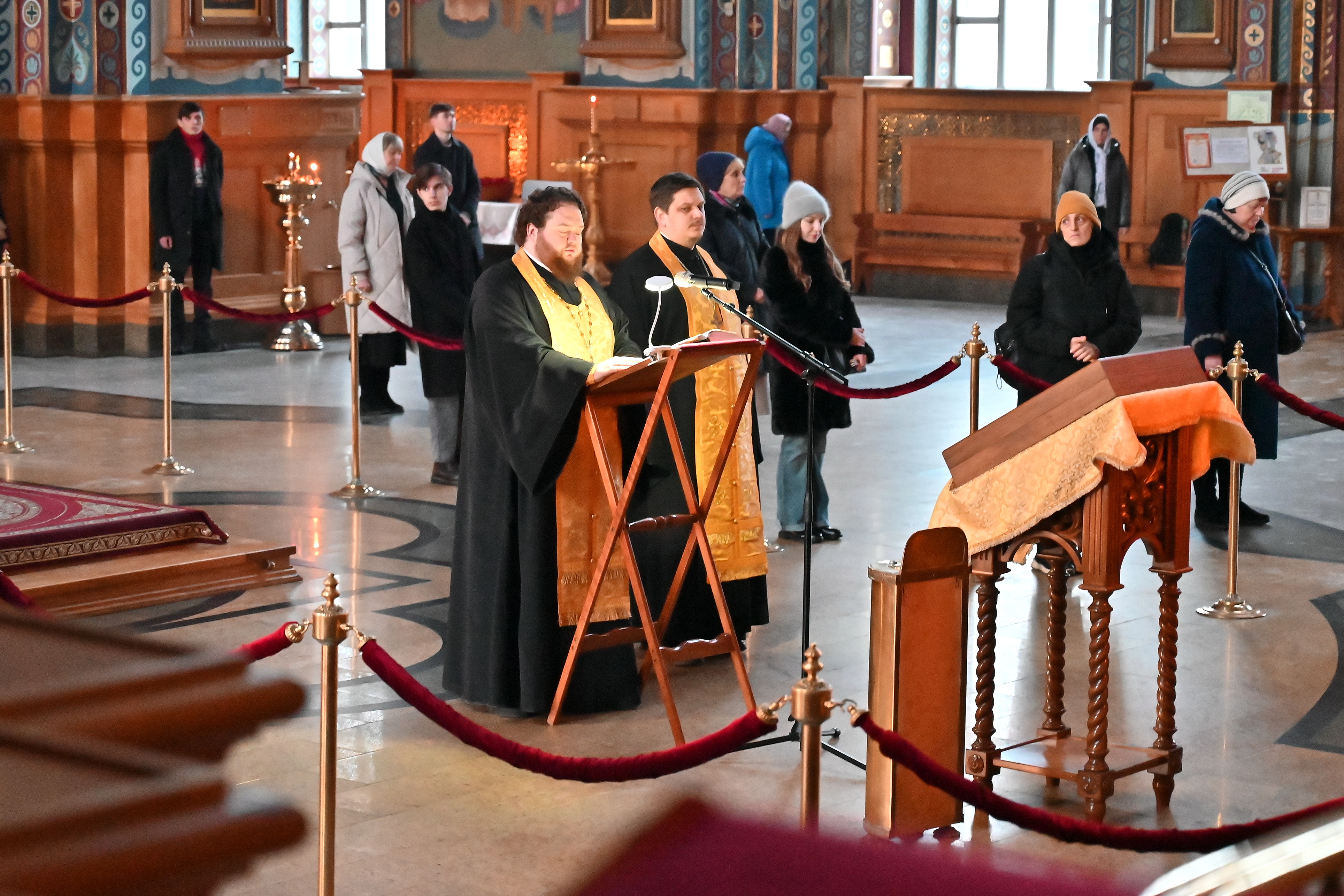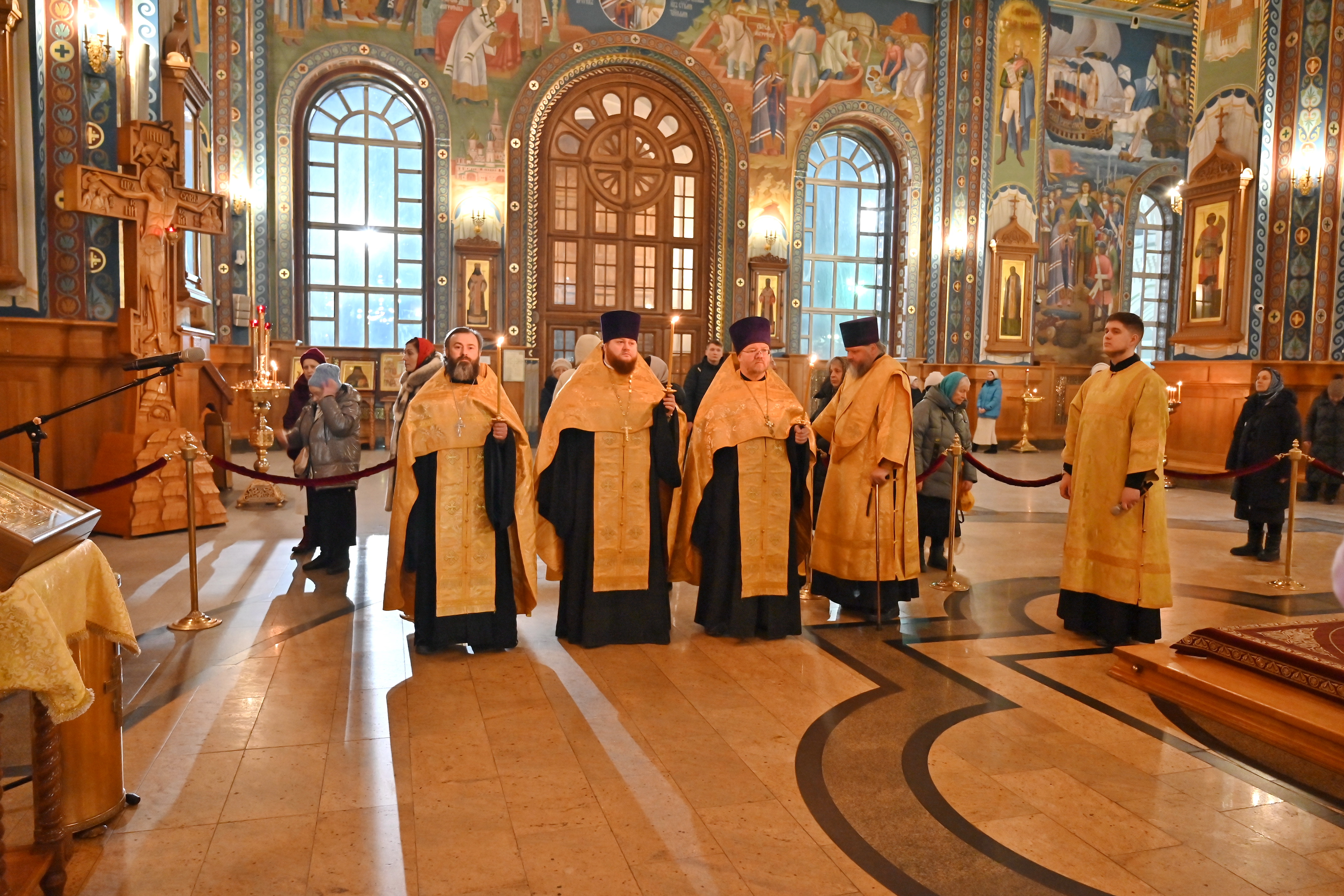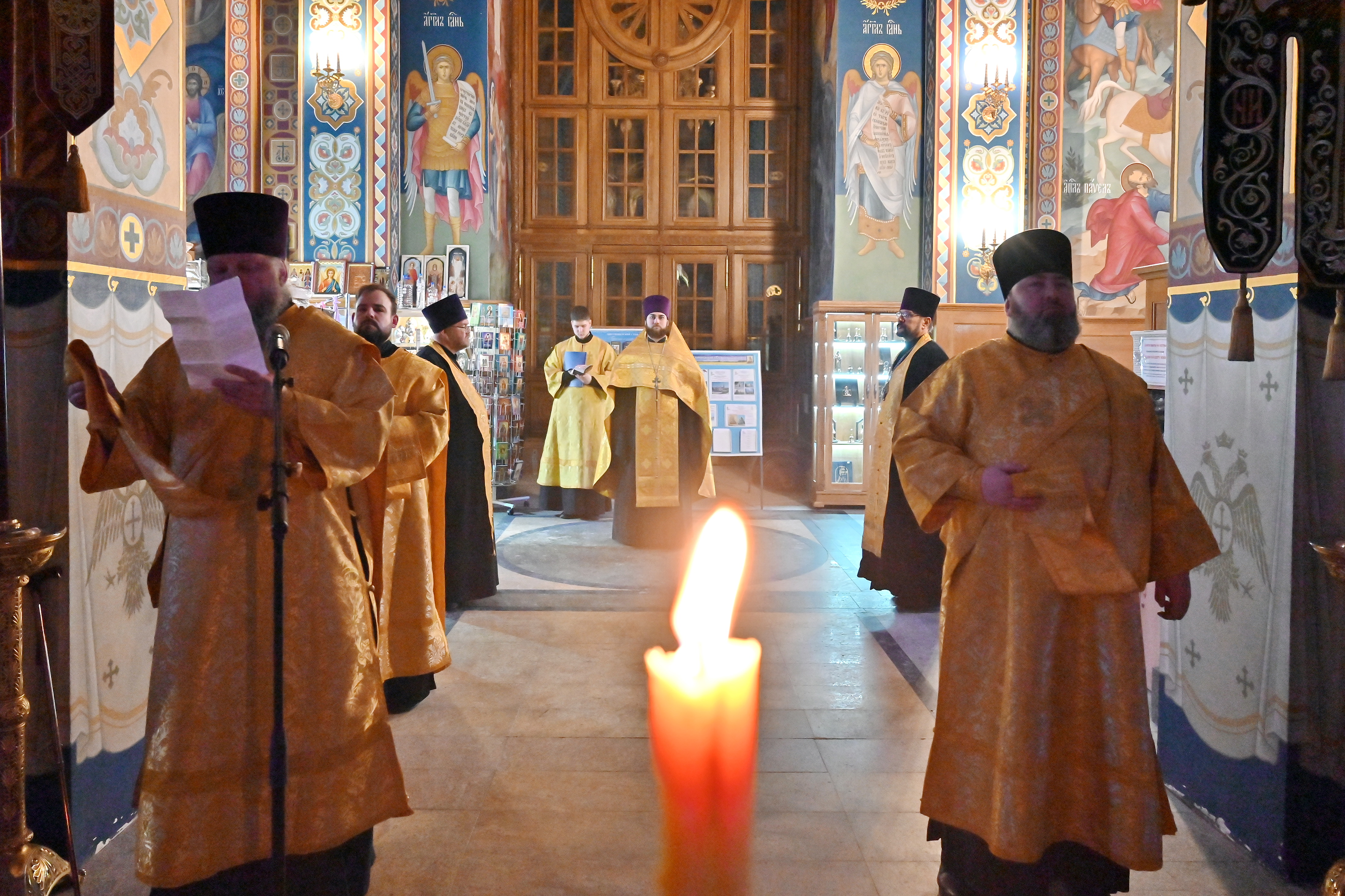 Богослужение возглавил ключарь кафедрального собора иерей Леонид Куламов в сослужении клириков собора.