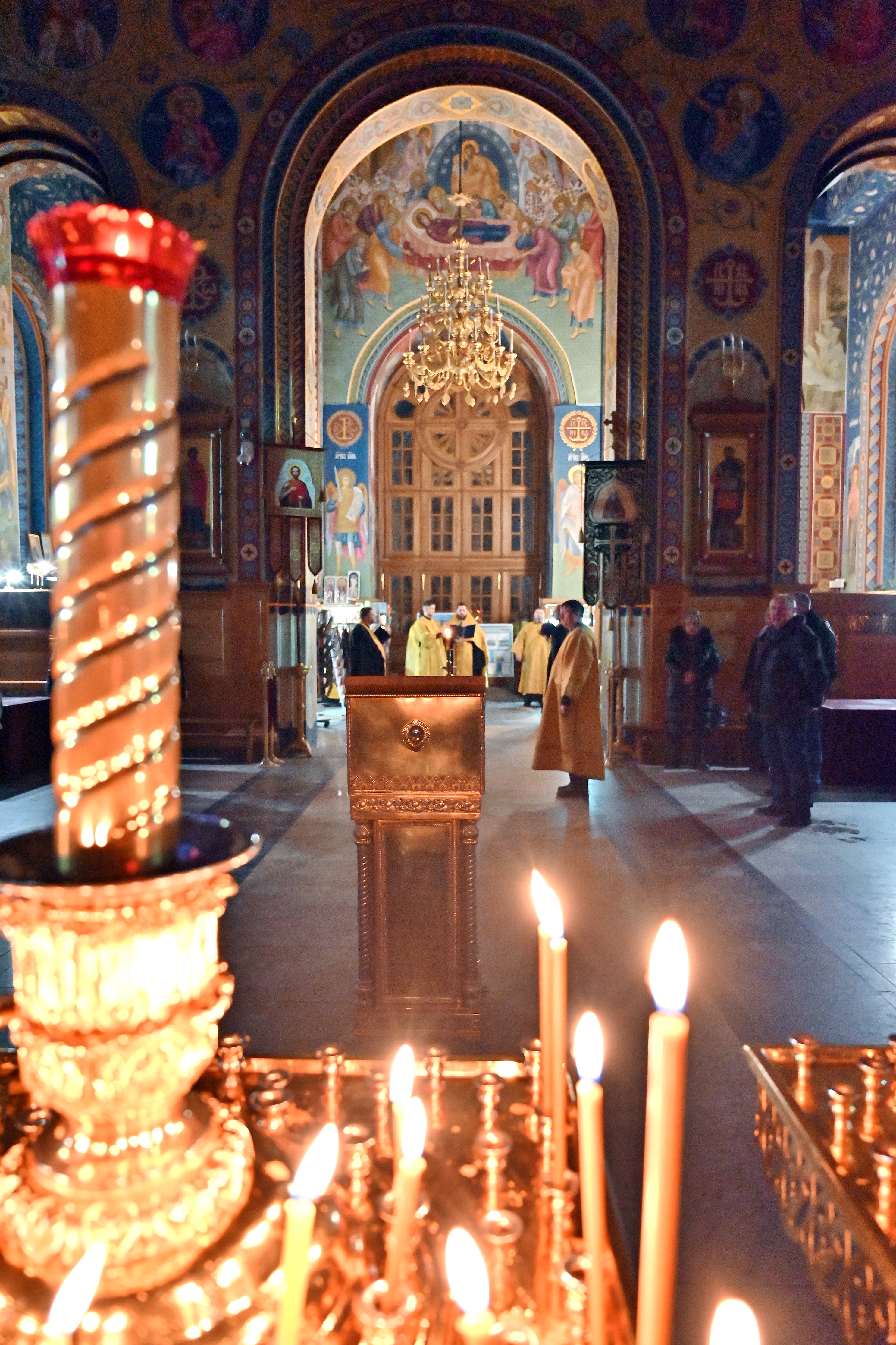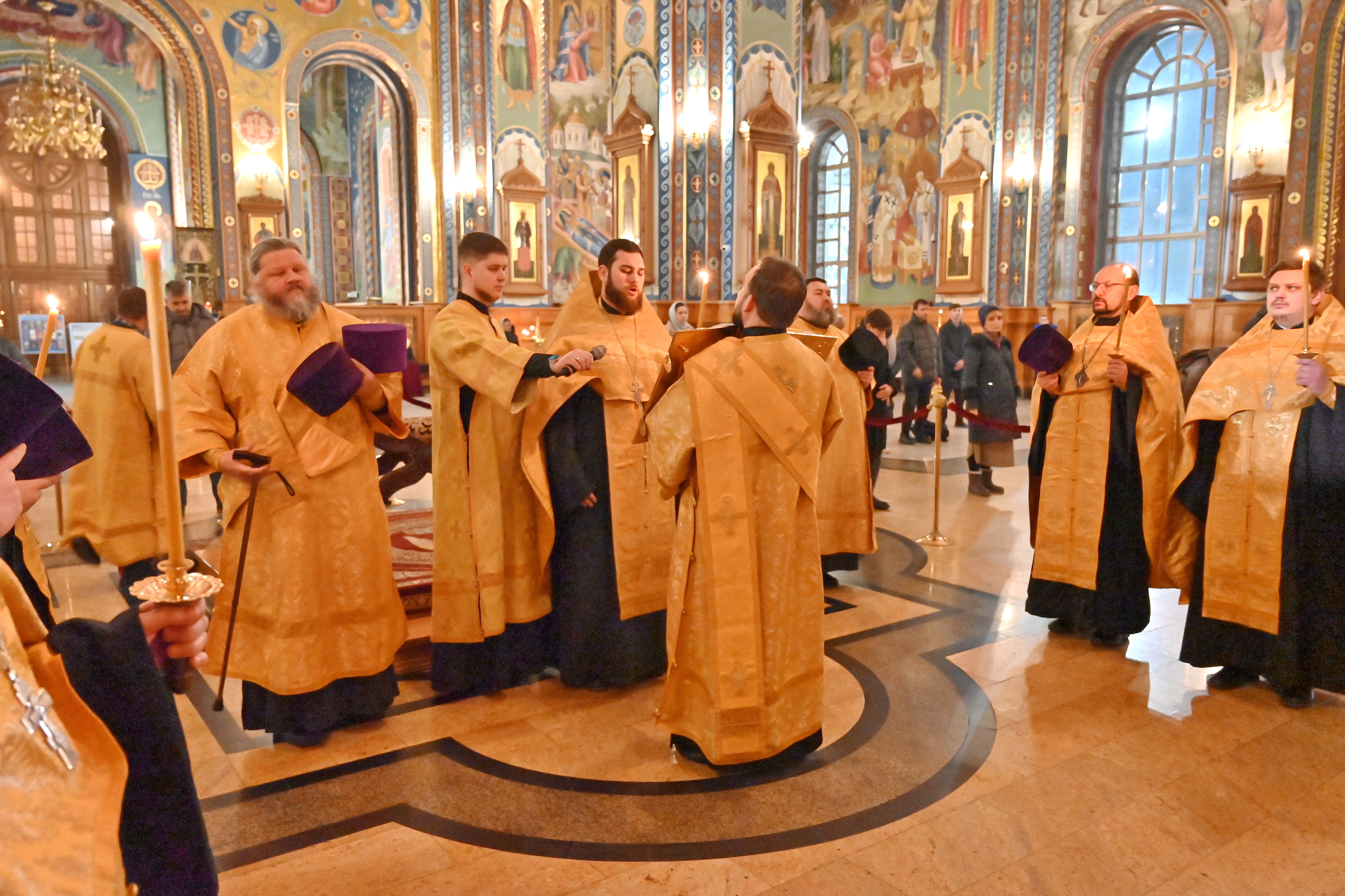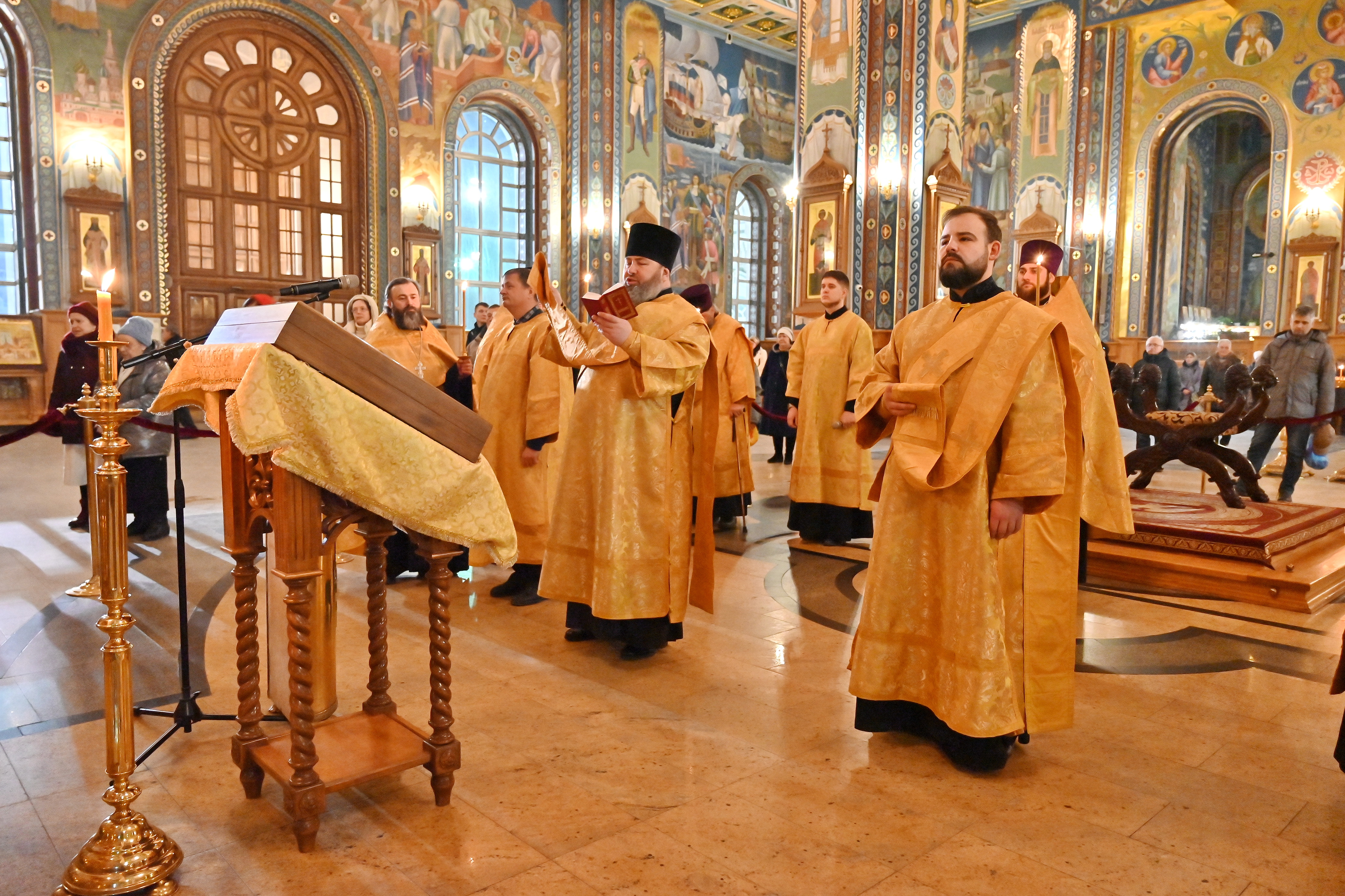 11 февраля 2026 года, в канун праздника Собора вселенских учителей и святителей Василия Великого, Григория Богослова и Иоанна Златоуста, в верхнем храме Благовещенского кафедрального собора города Воронежа совершено Всенощное бдение с литией.
