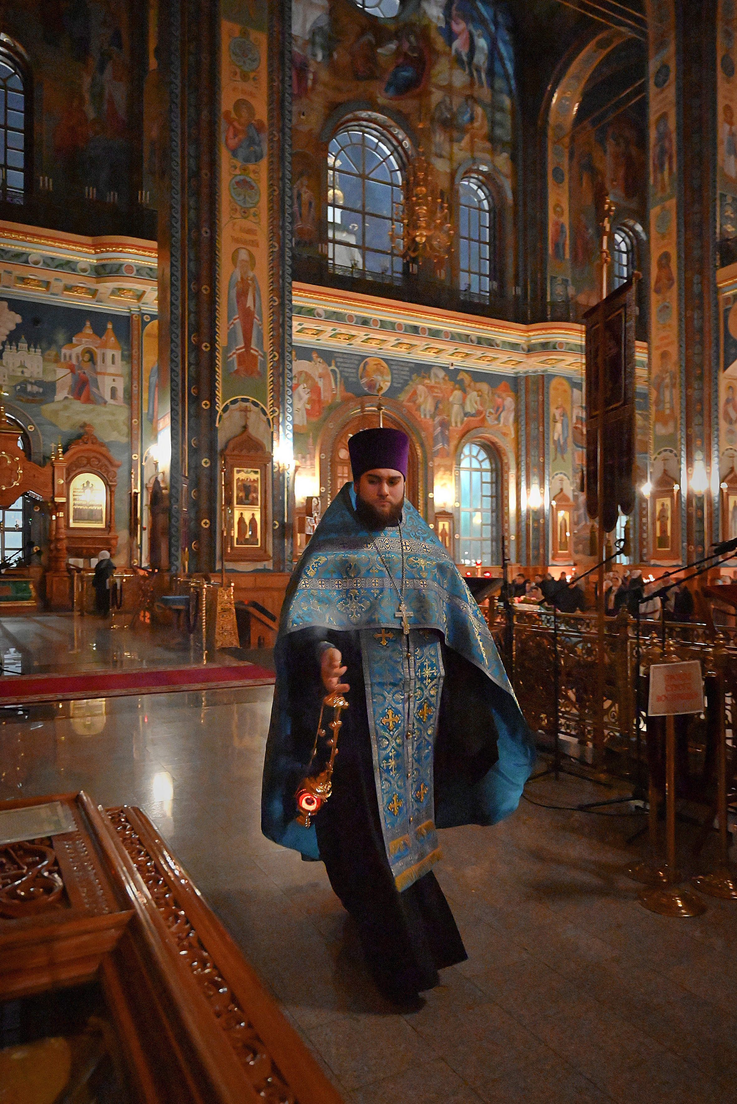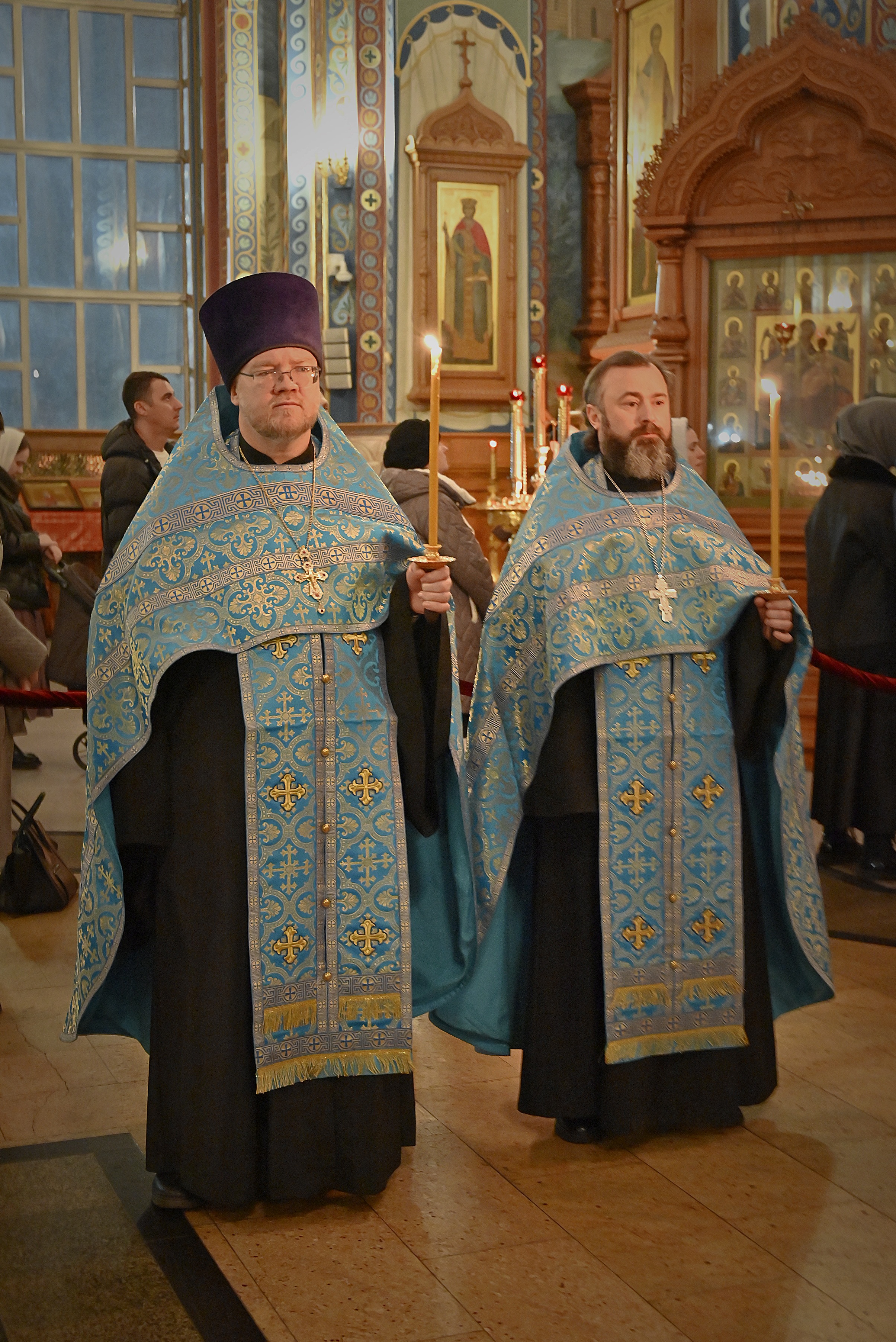 3 декабря, в канун дня празднования Введение во Храм Пресвятой Богородицы, в Благовещенском кафедральном соборе было совершено Всенощное бдение, которое возглавил ключарь собора иерей Павел Колбасов в сослужении клириков собора.